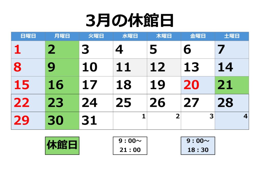 ・3月21日(土曜日)休館日