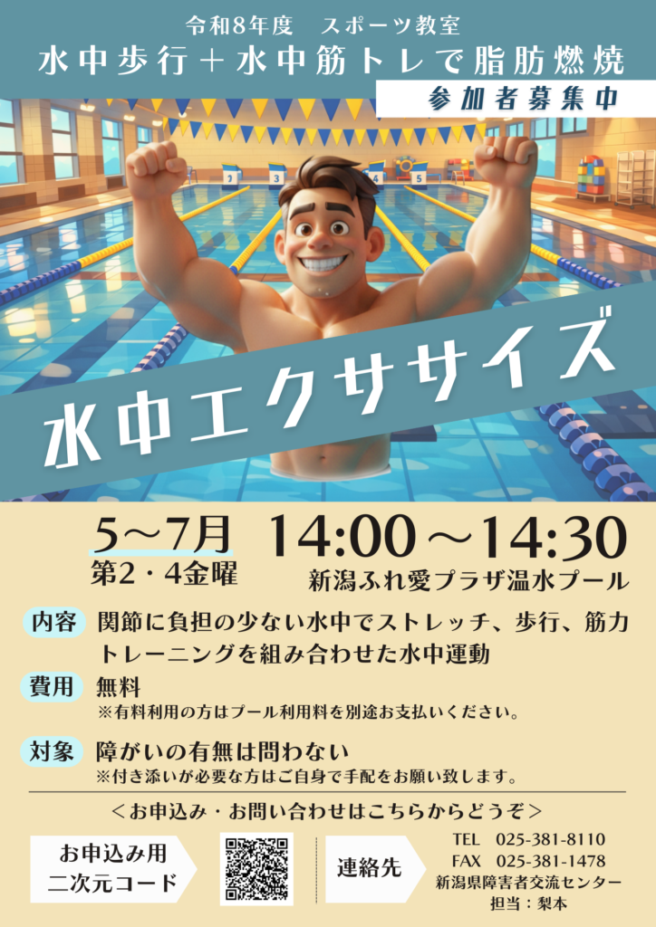 5月~7月の3か月限定で水中エクササイズの教室を開催いたします!